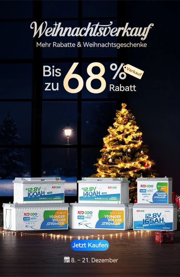0% MwSt. - Redodo 12V 140Ah Untersitz LiFePO4 Batterie mit Bluetooth für Wohnmobil